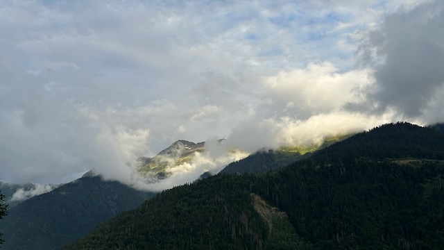 Souvent la météo mettra tout le monde d’accord, les orages du soir font rentrer tout ce qui bouge aux terriers respectifs, avec côté humain quand même un avantage qui lui permet de voir à travers ses fenêtres les nuages faire leur show, nous cacher les montagnes comme les parents apprennent au tout petit bébé que Sophie la girafe ou l’adoré doudou existe encore même quand il ne le voit plus