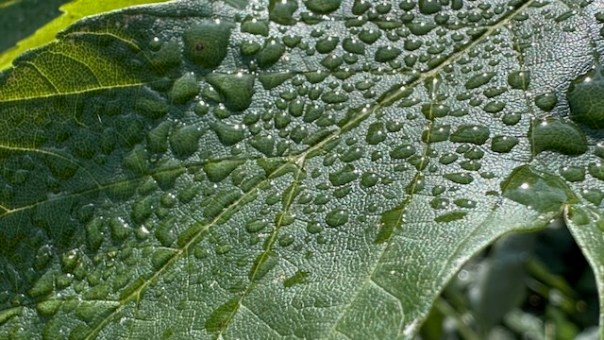 Le matin la rosée reste longtemps sur les feuilles, sur les derniers pétales des dernières fleurs, à peine des gouttelettes, presque une poudre d’eau qui fait ressortir leurs joues. Les feuilles des végétaux accueillent chacune l’eau d’une façon différente. Souvent même ça changera d’un côté de la feuille et de l’autre côté : l’eau s’étale, elle laisse un film lisse sur le dessus sinueux de la feuille de chêne, mais bourgeonne au-dessous fait pour rester au sec.
